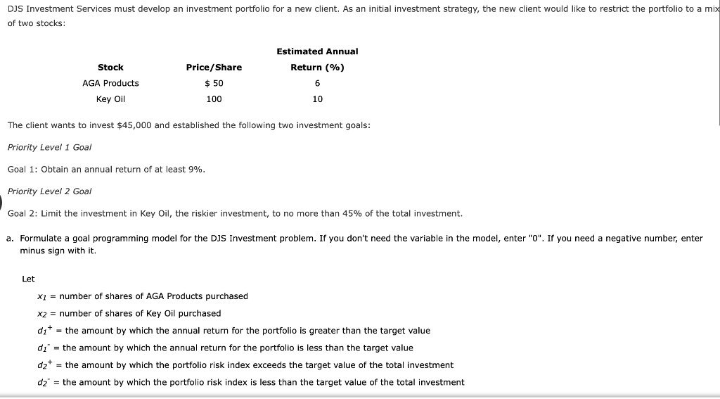 Solved Problem 2 Goal Programming Djs Investment Services Chegg Com